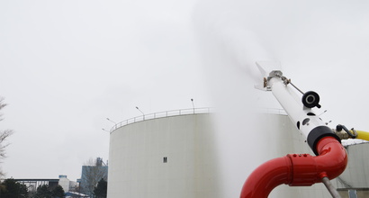 Stationäre Monitorlöschanlage zum Schutz von Lagertanks mit rund 200.000 m3 Mineralölprodukten und biogenen Roh- und Kraftstoffen.