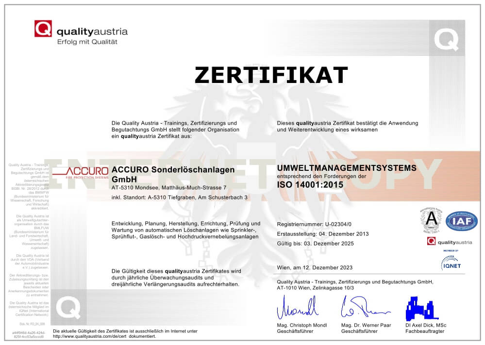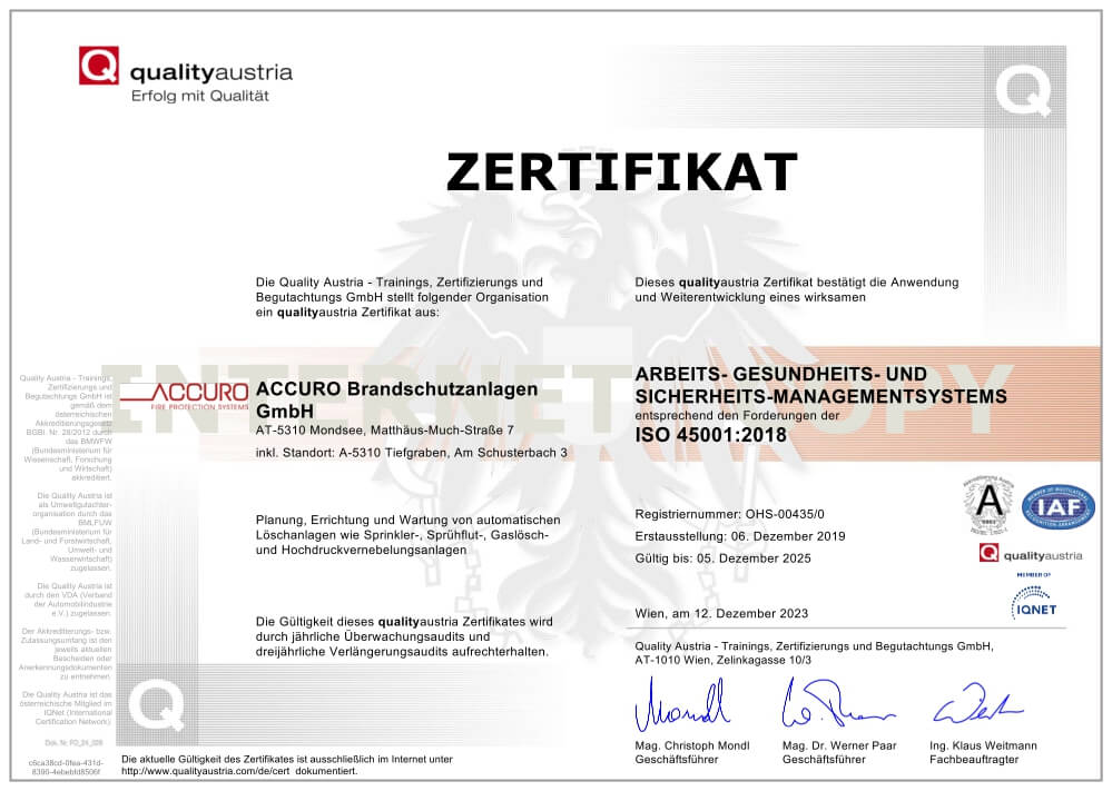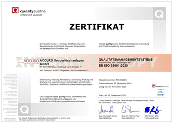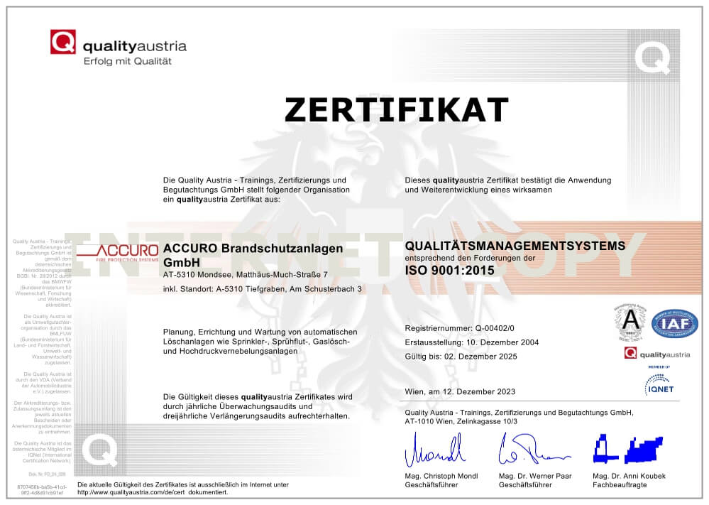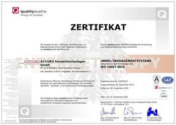 Die Erfüllung der von den Kunden erwarteten, sowie der von rechtlichen Vorgaben festgelegten Qualität von ACCURO, wird in erster Linie durch ein Qualitätsmanagementsystem nach der internationalen Norm EN ISO 9001: 2015 und den rechtlichen Vorgaben gewährleistet.