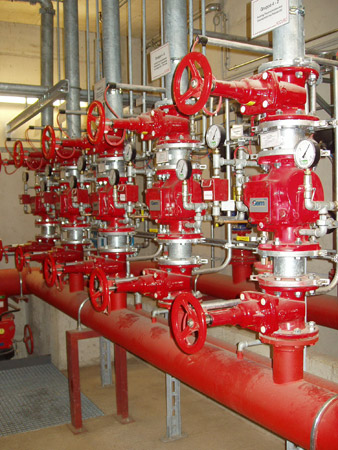 As a minimum requirement, the fire alarm system should be provided with a control panel in the front office. If the building stretches across several floors or the office space is designed as open-plan, a stationary extinguishing system is mainly used. In most cases, a sprinkler system is prescribed by authorities or insurance companies. In certain cases however, a water mist system may also prove to be a practical option (low water requirements, low water damage, thinner pipelines, etc.).