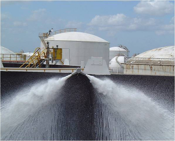 In addition to a tank extinguishing system, the tanks must be cooled from the outside. For this purpose, close circular pipelines with nozzles are installed on the outer surface. Should a neighbouring tank catch fire, the water cooling system will prevent the contents of the tank from overheating. This therefore stops a fire spreading from one tank to the next.