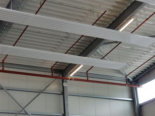 Industrial warehouses are mostly equipped with automatic sprinkler extinguishing systems. If the stored goods are sensitive to extinguishing water or if the use of large quantities of extinguishing water would lead to significant financial damage, a water mist system is recommended instead of a sprinkler system. For both technologies, external parts susceptible to frost should be designed as dry lines or coated with an anti-freeze product.