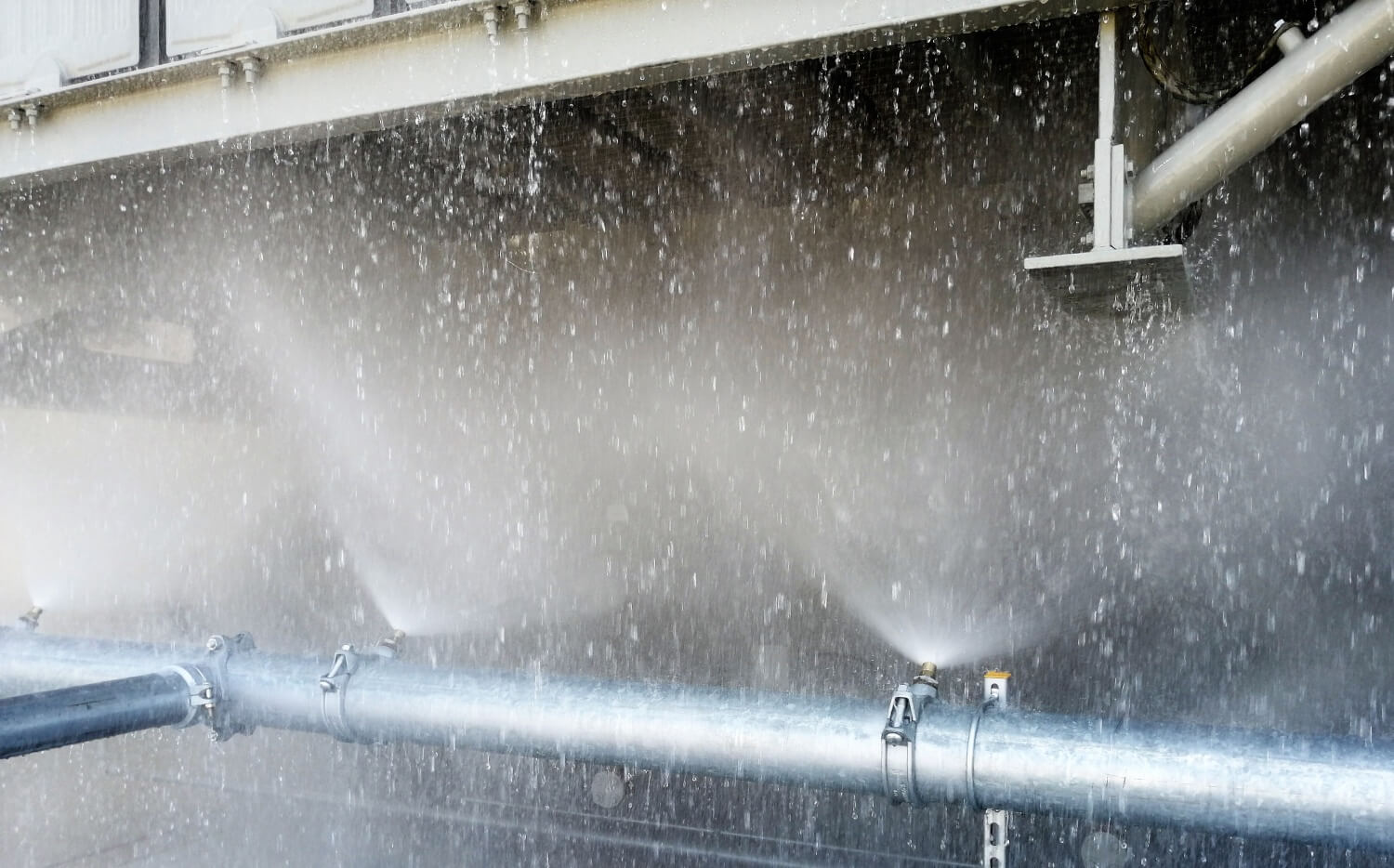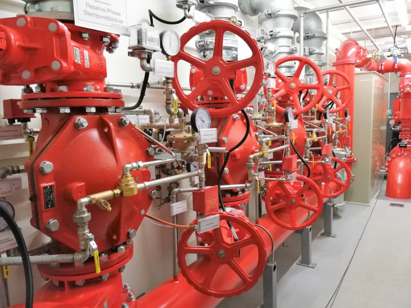The newly constructed transformer poles and the neutral point generator are optimally protected around the clock by the automatic deluge system with foram admixture. If the detection system (pneumatic and/or electrical) detects a hot spot, the extinguishing system is automatically triggered and the area to be protected is cooled with extinguishing water or extinguished by adding foam. Early detection and subsequent cooling can reduce further damage to the system and costly failures.