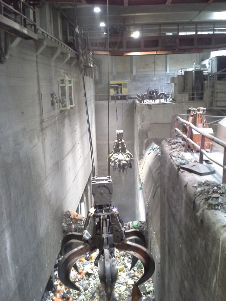 When fire is detected by thermal imaging cameras, the monitor system with foam admixture automatically starts the extinguishing process in the waste bunker.