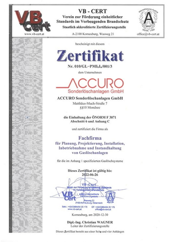 In order to be able to continue to ensure the high quality level for services in the field of plant-related fire protection, as well as to achieve the defined scope of protection of the plant-related fire protection system, we recommend that these services be carried out exclusively by specialist companies that are accredited by a certification body for the respective service phase required have been certified.