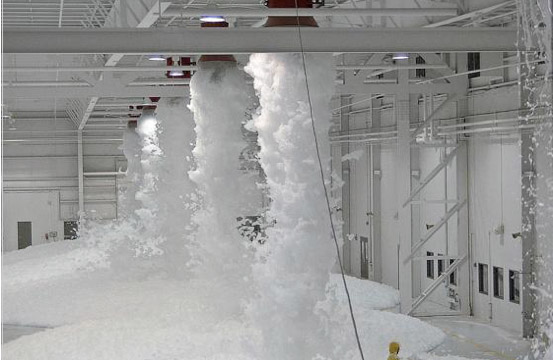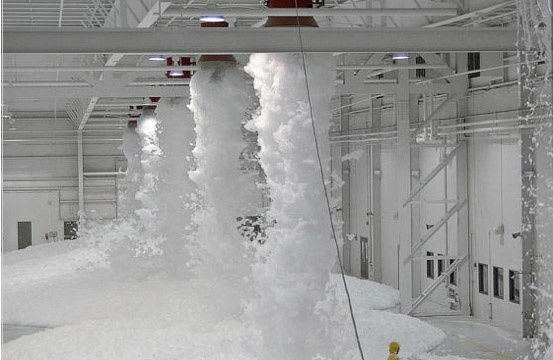 High-expansion foam has an exceptionally low weight and a large volume. High-expansion foam is also particularly dry. Due to its low weight, it can not be thrown and must be sprayed through special foam generators in the extinguishing area. The extinguishing effect is largely a separating and suppressing effect.