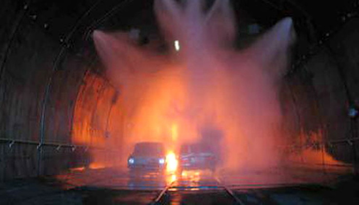 The combination of an optimal droplet size and a dispersion of the droplets under high pressure, ensures a deep penetration of the water mist into the fire source and a rapid cooling of the flue gases. In addition, flue gases are cleaned from the air and this allows the fire brigade to enter the extinguishing area more quickly