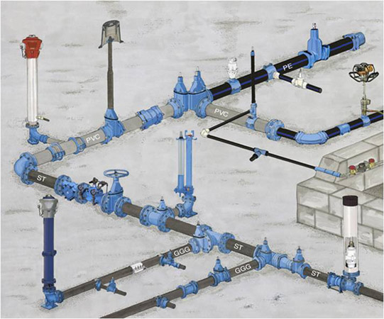 Polyethylene is distinguished by durability and a high resistance to environmental influences. The main water supply pipe essentially serves as the main artery for every water extinguishing system. A long material service life and a high flexibility against mechanical influences are extremely important. The water outlet points connected to the main pipe are largely located above-ground and can be exchanged, maintained and renewed relatively easily. However, if a digger is required to exchange a leaking main pipe, this will be very expensive and can particularly cause disruption to business and transport processes.